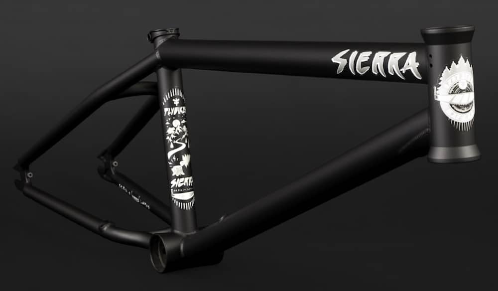 Here is Sergio Layos’ signature frame from Fly Bikes which is called the Sierra Frame. This frame has been updated over the previous version with a change in head tube angle to 75°.